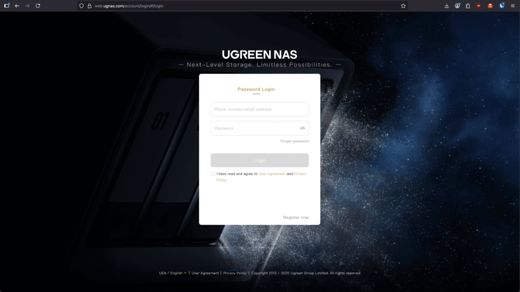 Now login to your NAS device using your NAS’s credentials and NOT your online UGREEN account’s credentials.
