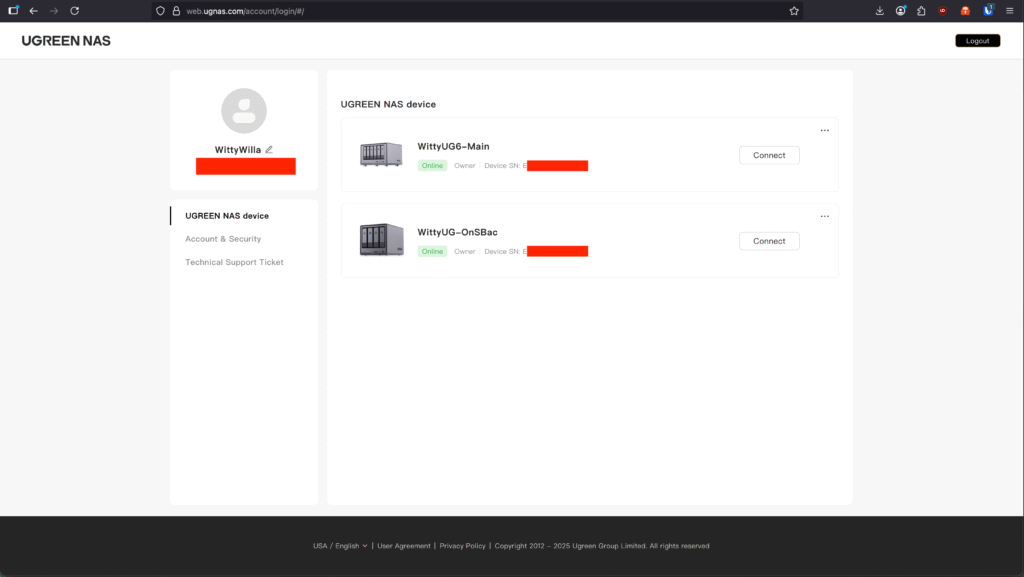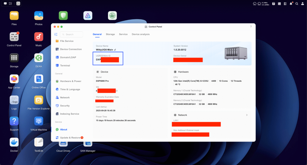 In the image below, I have blocked-out the UGREENlink ID & login information to my NAS device due to security reasons.