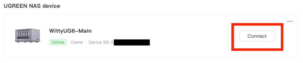 Click on the connect button of whichever NAS you are trying to hook up to. In this case, it’s going to be my NAS device “WittyUG6-Main”